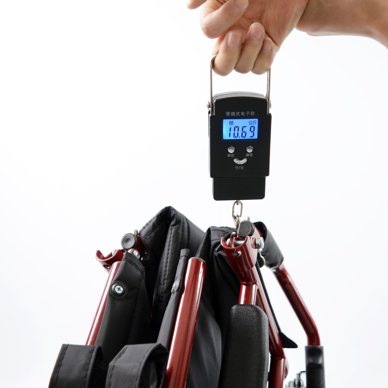 Foldable high-strength aluminum alloy frame; Backrest half folding; Attendant brakes; Comes with a safety belt